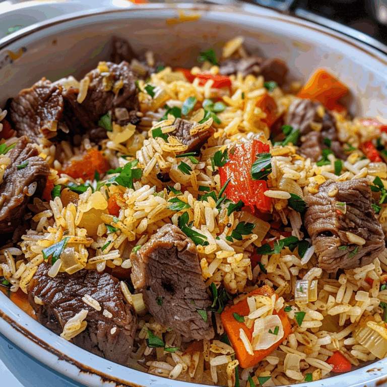 Aromatic, tender beef mingling with fluffy rice and the robust flavors of spices—does that not sound like the stuff of culinary dreams? Beef Plov (Beef Rice Pilaf) is not just a meal; it’s an experience that tantalizes your taste buds while filling your kitchen with an aromatic embrace. Imagine the savory scent wafting through your home, beckoning family and friends to gather around the table for a feast. For more inspiration, check out this Amish Country Casserole recipe.