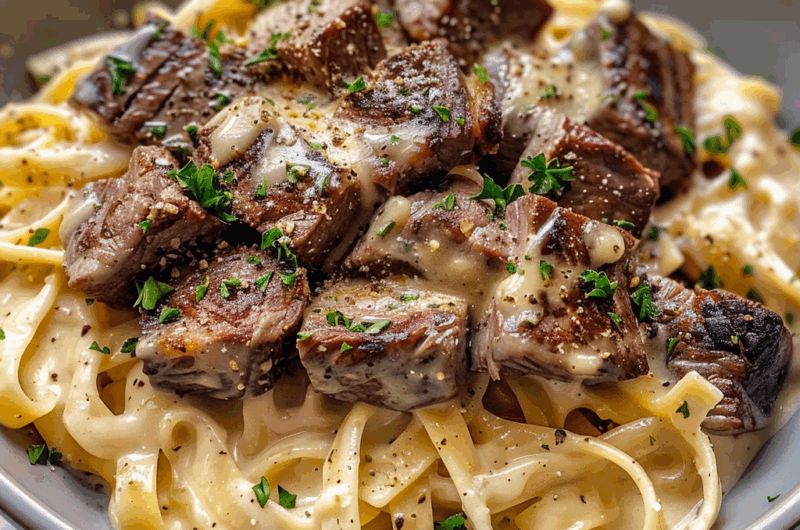 Indulge in the ultimate comfort food with this Creamy Steak and Pasta Dinner. Featuring tender steak seared to perfection and generously coated in a rich, creamy sauce, this dish is sure to impress. Pair it with al dente pasta for a satisfying meal that is both hearty and delicious. Perfect for weeknight dinners or special occasions, this recipe offers a delightful blend of flavors that will have everyone coming back for seconds.
