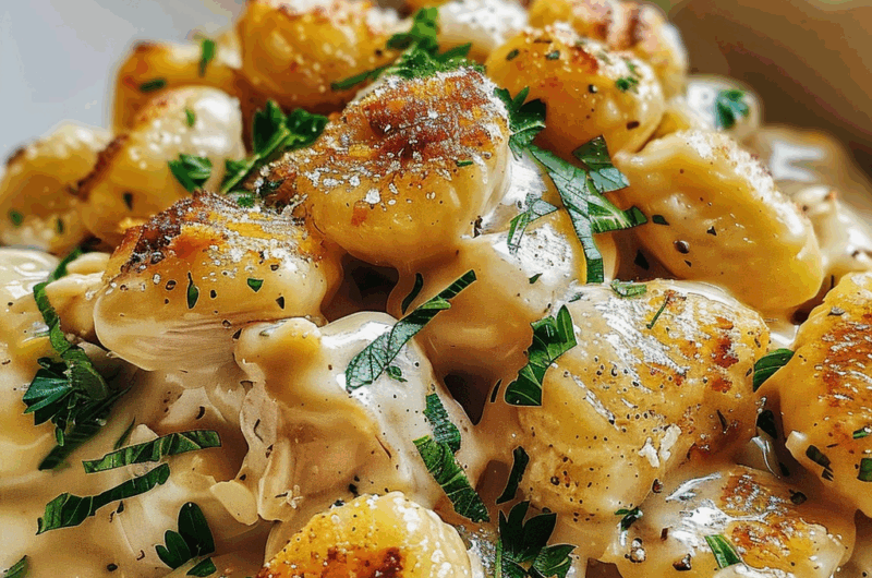 Creamy Chicken & Gnocchi is a delicious Italian-inspired dish that combines tender chicken, fluffy gnocchi, and a rich, creamy sauce. This comforting meal typically features ingredients like spinach, garlic, and Parmesan cheese, creating a satisfying flavor profile. The gnocchi adds a delightful texture that complements the creaminess of the sauce. savory Italian meatballs It’s perfect for a family dinner or special occasions, offering a hearty dish that everyone will love. You can easily customize this recipe by adding your favorite vegetables or herbs to enhance its taste further.