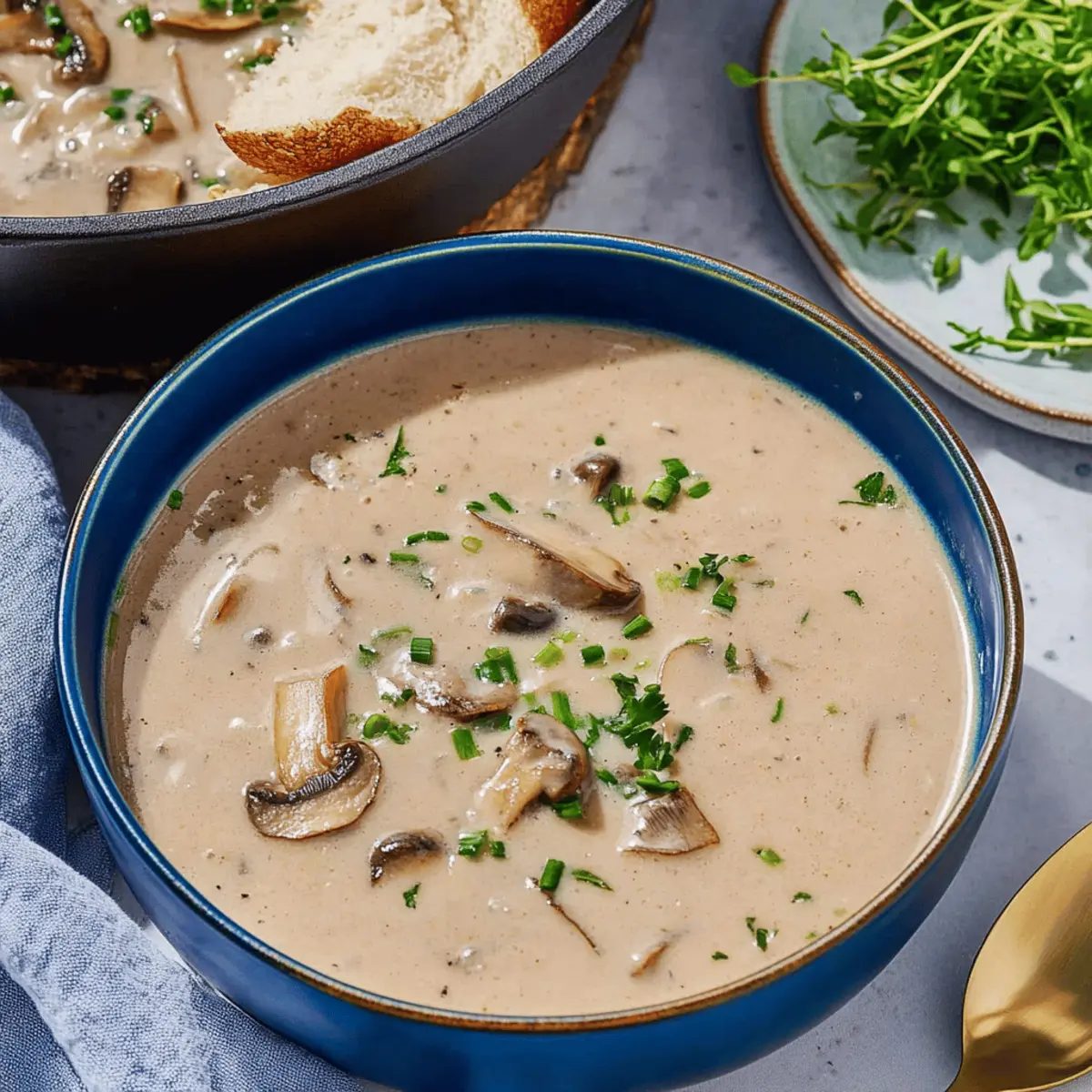 Serve your Mushroom Soup hot, garnished with a drizzle of extra virgin olive oil and a sprinkle of finely chopped fresh chives. This is not just soup; it’s therapy in a bowl! Perfect for chilly evenings or any time you need a comforting dish, this recipe is sure to become a favorite.