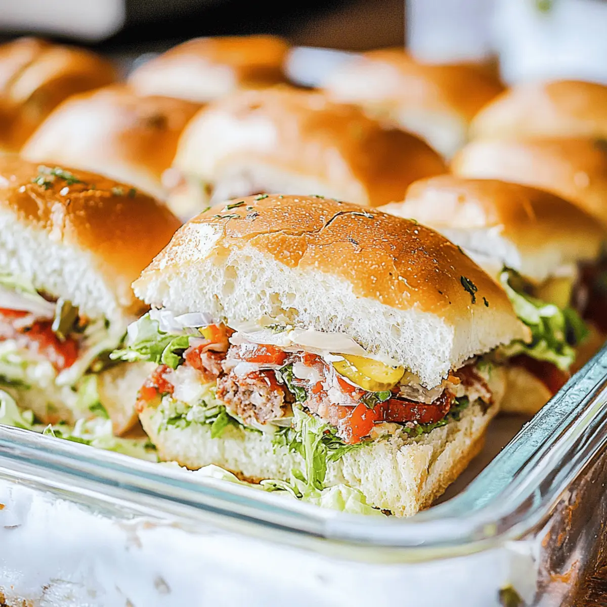 Once the sliders are perfectly baked, remove the tops, add a generous scoop of the grinder salad, and then gently place the tops back on. Serve immediately and watch everyone’s faces light up with joy.