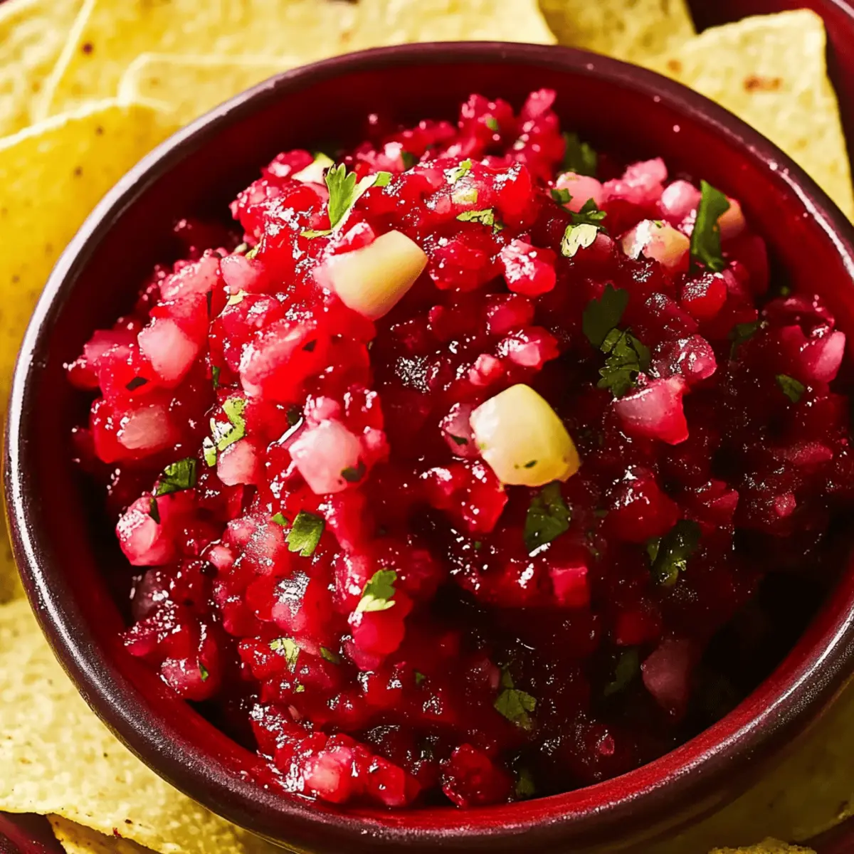 Cranberry Salsa is incredibly adaptable when it comes to serving options. You can dish it out as a dip alongside tortilla chips or pita chips, allowing your guests to scoop up the salsa with ease. It also makes a stunning topping for grilled chicken, fish, or pork, adding an impressive burst of flavor. Another delightful idea is to serve it on a cheese platter with creamy cheeses. Whatever way you enjoy it, this salsa is sure to be a hit!