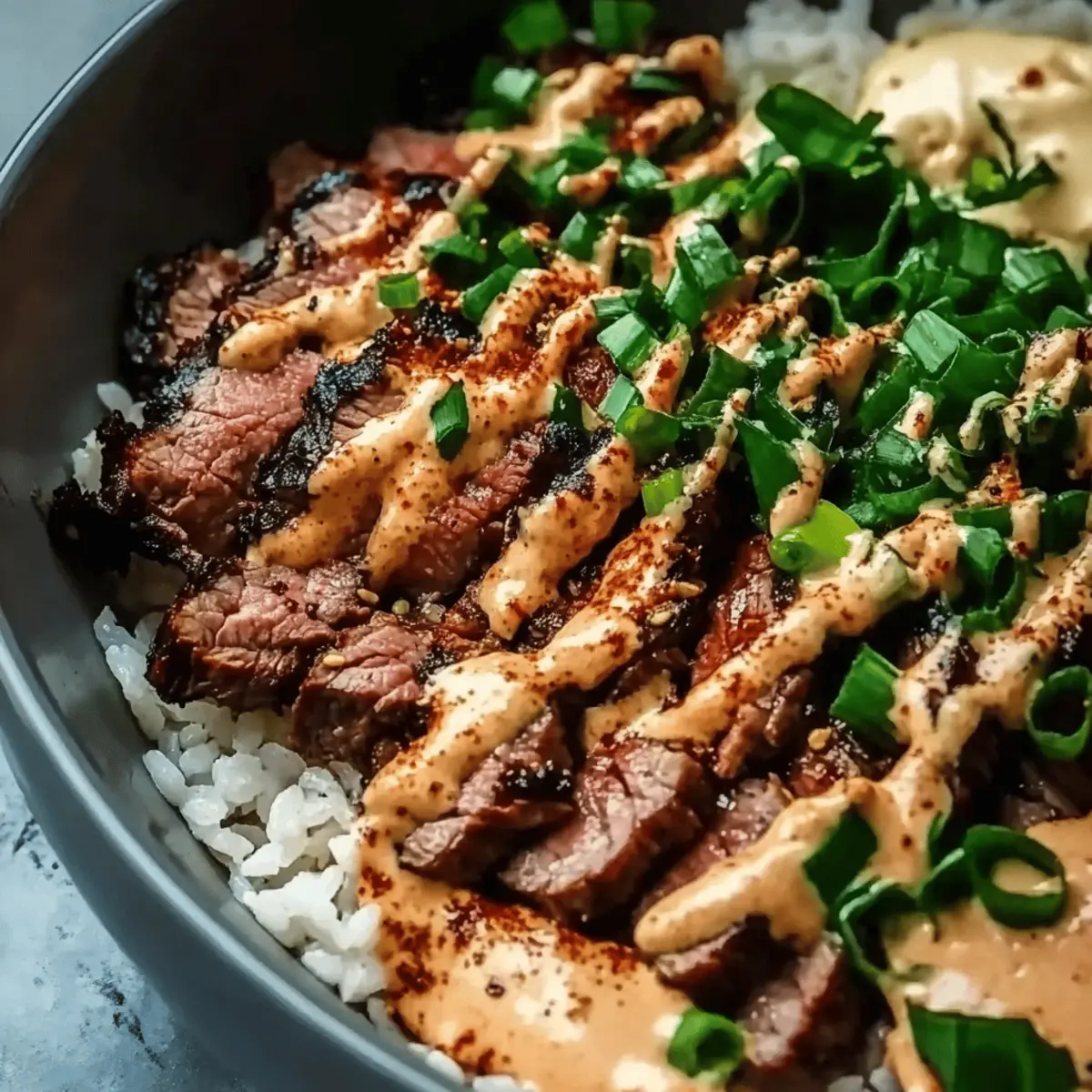 What is Korean BBQ Steak Rice Bowls with Spicy Cream Sauce?