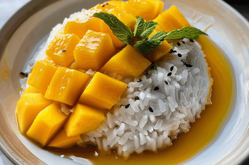 Start by soaking the sticky rice for at least four hours, or overnight if you’re feeling fancy. Next, steam the rice until it’s perfectly tender before preparing your coconut sauce. Finally, slice the ripe mango just before serving to keep it fresh and juicy.